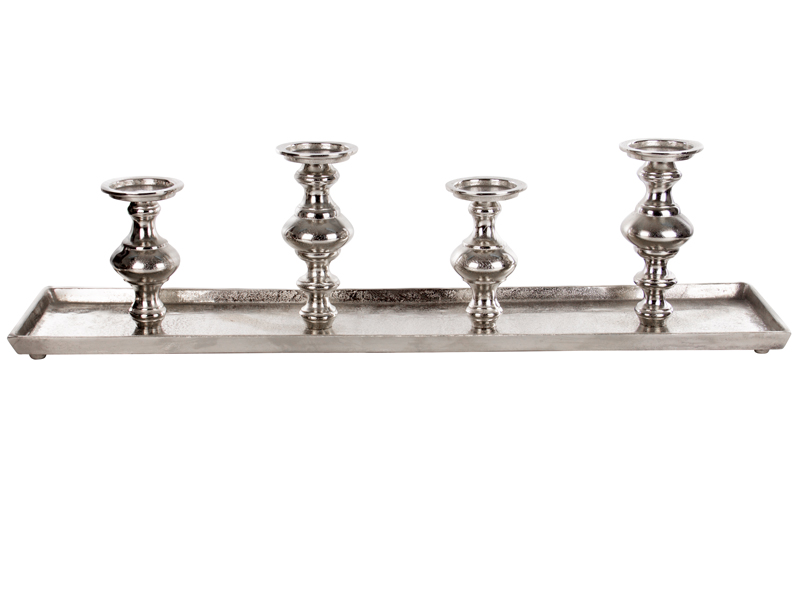 Підсвічник з алюмінію довжиною 101 см розрахований на 4 свічки та стане виразним елементом декору для вашого інтер’єру. Його подовжена форма з елегантними тримачами на стійкій основі ідеально підійде для сервірування великого столу чи прикрашання камінної полиці.