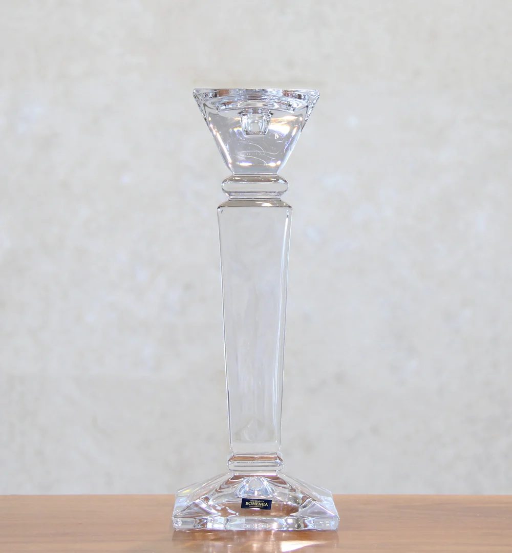 Підсвічник Emprey висотою 30 см — це гармонійне поєднання витонченості та функціональності. Виготовлений із високоякісного кришталевого скла, він відрізняється прозорістю та чистотою ліній, створюючи вишукану гру світла під час запалювання свічки.