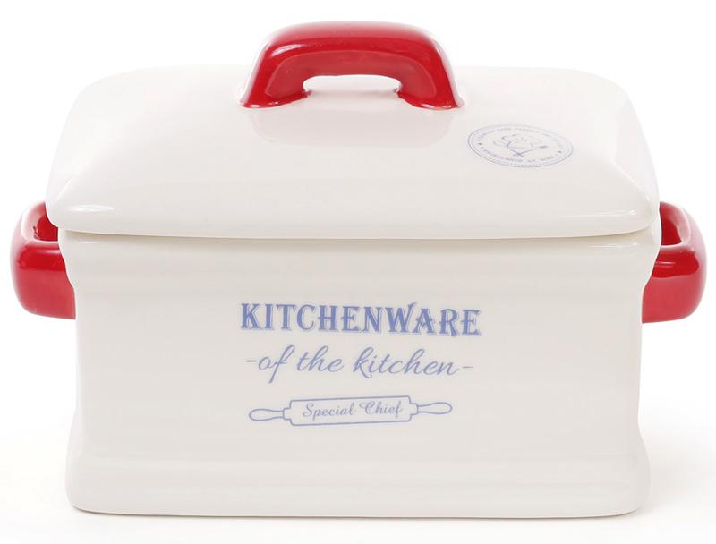 Сырница керамическая Red&Blue с крышкой - красивая и функциональная посуда, современное оригинальное украшение Вашего дома. Для хранения и подачи различных сыров, масла, паштета, соуса, приправ, орехов и прочего. Размер 16.4х10.5см, высота - 10.2см. Изготовлена из керамики - безопасного материала даже для длительного хранения продуктов. На белом фоне красный декор с синей надписью: KITCHENWARE of the kitchen. Упакована в цветную принт-коробку.