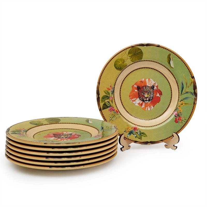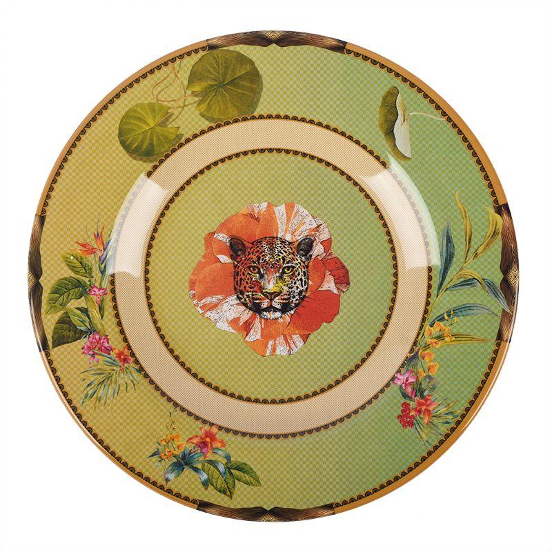 У незвичайному малюнку використані рослинні та анімалістичні мотиви з навмисне підкресленим ефектом декалькоманії. Італійські майстри виявили креативність навіть у виборі фону для фантазійних картинок, завдяки чому дизайн кожної моделі індивідуальний. Тарілки, страви, вази, салатники, таці, чайний посуд – різноманітний асортимент, який малює картину диких джунглів, але не агресивних, а барвистих, експресивних та чарівних.