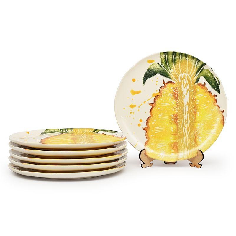 Десертная тарелка «Фруктовый коктейль» Villa Grazia — это воплощение летнего настроения и яркой эстетики. На светлой поверхности изображён сочный ананас, выполненный в акварельной технике, с мягкими переходами жёлтых и зелёных оттенков. Такой рисунок создаёт эффект свежести и добавляет энергии любому застолью.