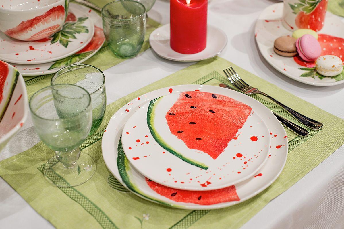 Десертная тарелка «Фруктовый коктейль» Villa Grazia — это олицетворение лета на вашем столе. Яркий рисунок сочного арбуза с зелёной кожурой и красной мякотью выполнен в технике акварели, что придаёт посуде живость и свежесть. Такой дизайн наполняет сервировку позитивом и идеально подойдёт для лёгких десертов, ягод или фруктов.