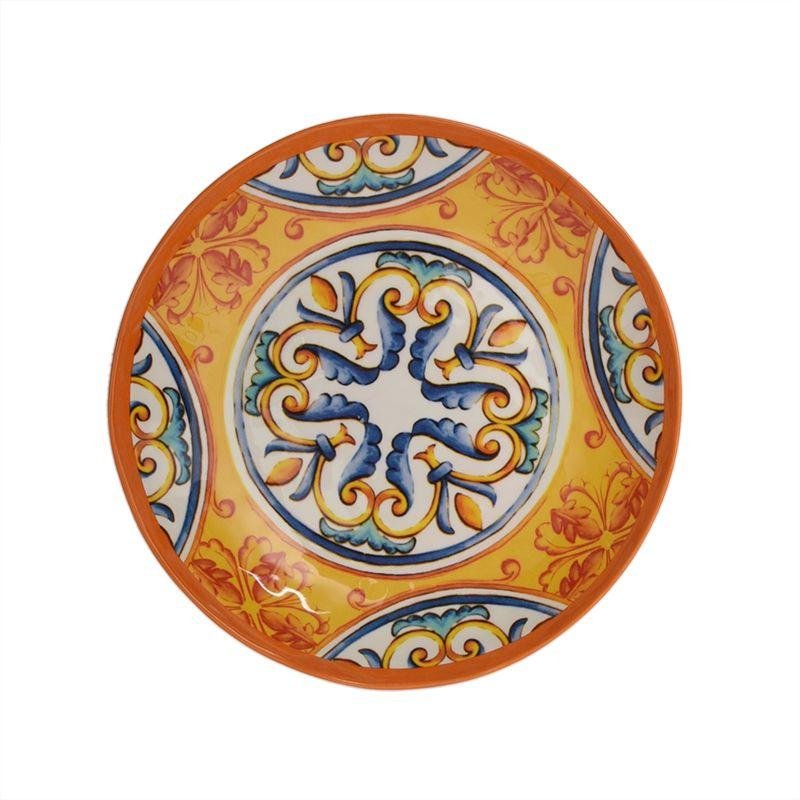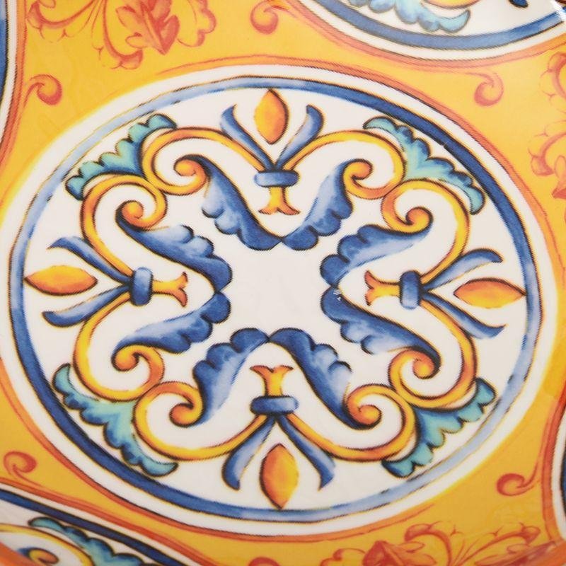 Яркая тарелка с узором, вдохновлённым эпохой Возрождения, выглядит как настоящая расписная керамика, но при этом лёгкая и ударопрочная. Пластик высокого качества не бьётся даже при падении, что делает посуду идеальным выбором для пикников, дачи или семейных ужинов на террасе. Продукция создана для многократного использования, устойчива к износу и полностью безопасна для контакта с пищей. Меламиновая посуда итальянского производства имеет все необходимые сертификаты, подтверждающие её качество и безопасность.