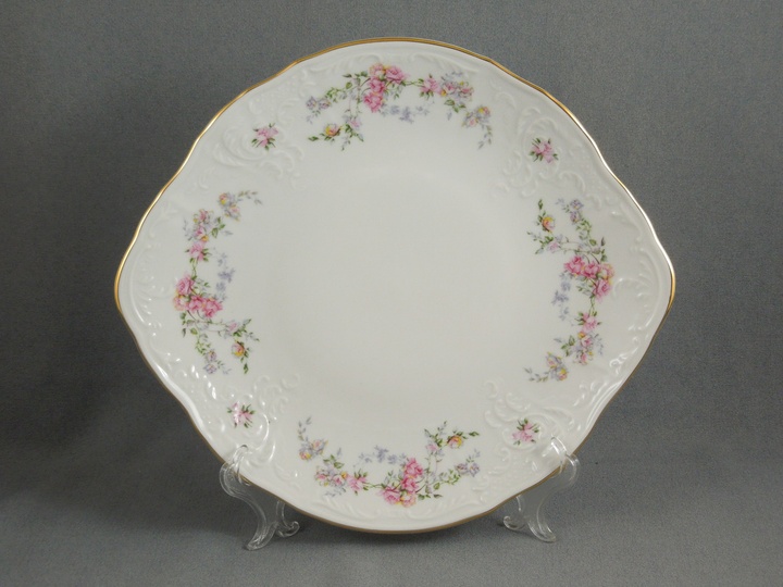 Тарілка для торта порцелянова білого кольору з малюнком Thun Bernadotte Дика Троянда 27 см із золотою облямівкою