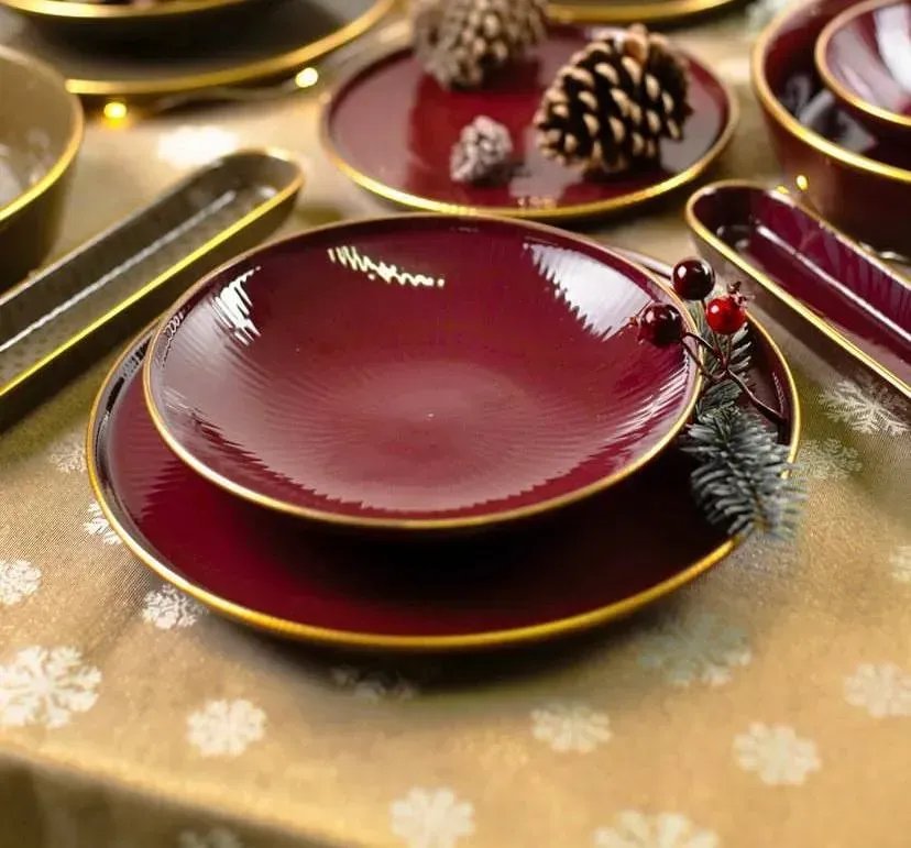Коллекция Bordeaux — это воплощение глубокой эстетики и сдержанной роскоши. Насыщенный винный оттенок посуды напоминает бархат — мягкий, глубокий, с лёгким блеском. Золотая окантовка добавляет благородства и подчеркивает изысканность каждой тарелки.