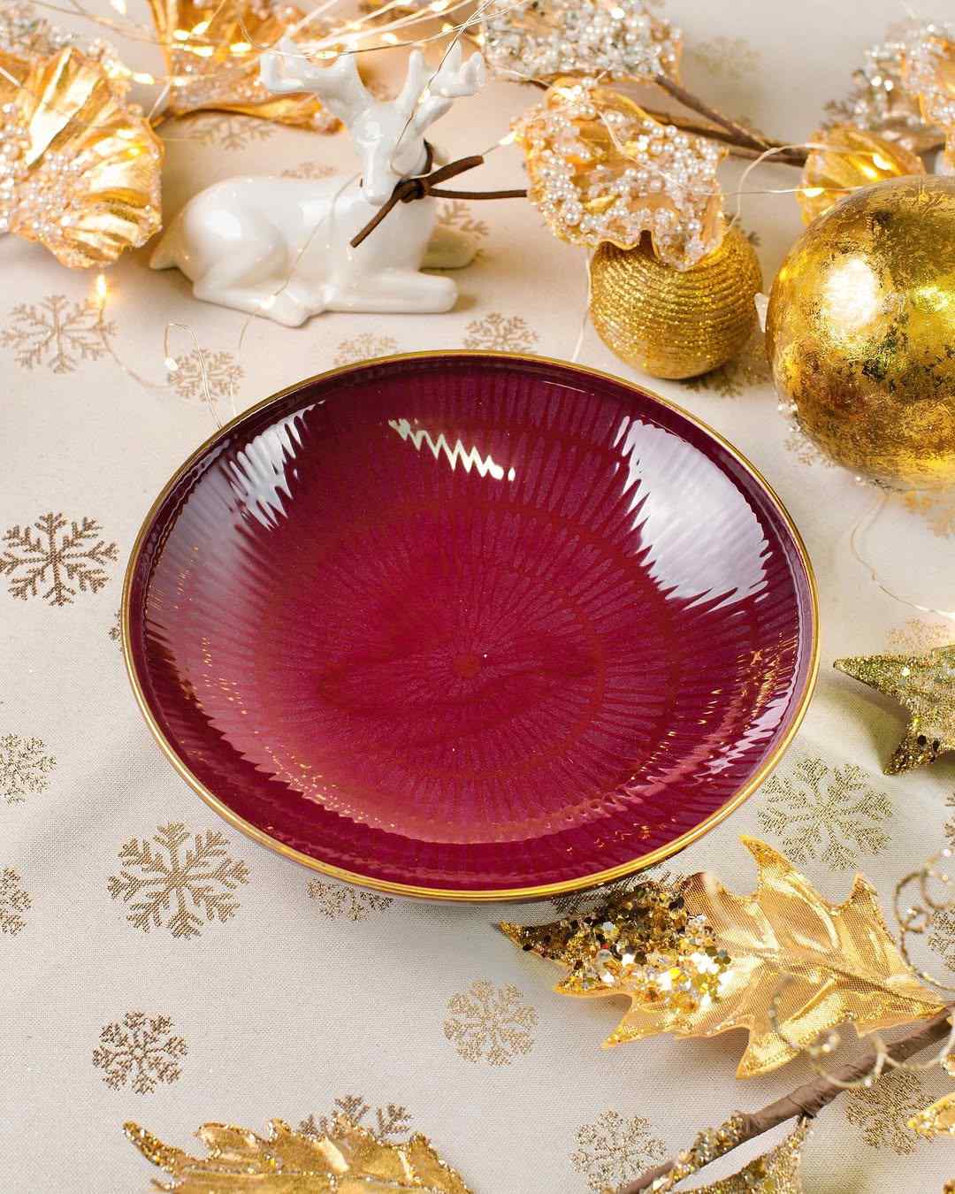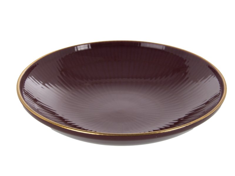 Тарелка керамическая круглая бордовая с золотым краем Bordeaux 21 см