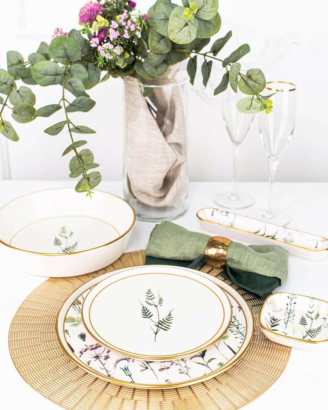 Коллекция посуды Floral — это нежное прикосновение природы к вашему столу. Акварельные листья, изящные цветочные веточки и тонкие золотые ободки создают ощущение лёгкости, уюта и утончённого вкуса. Каждое изделие словно пропитано дыханием леса, тишиной и гармонией.