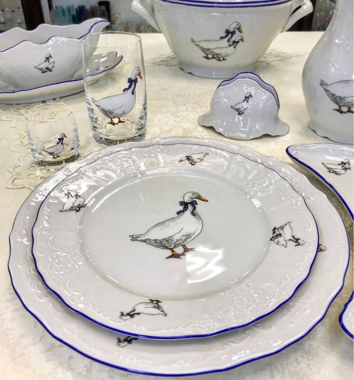 БрендThun Країна виробництваЧехія КолекціяГуси Кількість предметів1 МатеріалПорцеляна УпаковкаФірмова Вид тарілкиНабір тарілок Наявність декоруТарілка з візерунком Діаметр посуду27 см Кількість осіб1