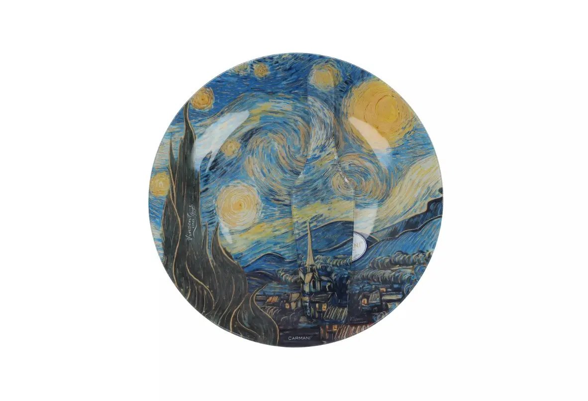 Тортовница с лопаткой из стекла от бренда Carmani — это не просто предмет сервировки, а настоящее произведение искусства, которое украсит ваш стол и подарит эстетическое удовольствие каждому гостю. Коллекция оформлена в стиле знаменитых полотен Винсента Ван Гога, что делает эти изделия особенно привлекательными для ценителей живописи и утончённого дизайна.