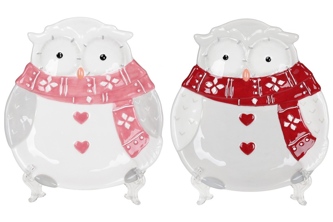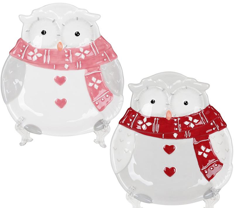 Тарілки з кераміки виконані в ніжних тонах з яскравою особливістю - кольоровим шарфиком. У наборі 2 дизайни - совушка в червоному та рожевому шарфику.