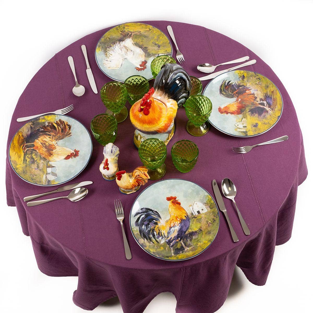 Посуд виготовлений із надміцної екологічної кераміки преміум-класу. Оригінальний квітковий дизайн створений популярною американською художницею Сюзен Уінгет. На кожній із тарілок зображено півня, які допомагають створити атмосферу кантрі. Не рекомендується чистити засобами з абразивними частинками.