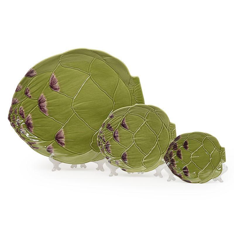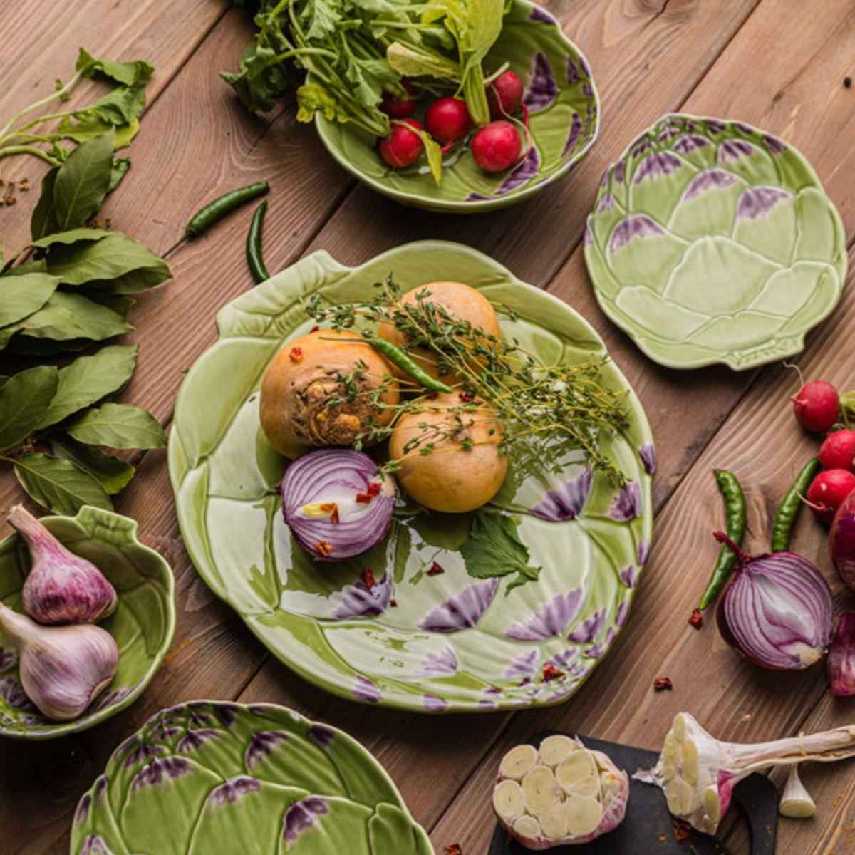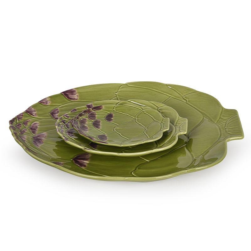 Невелика тарілка незвичної форми виконана у вигляді розкритого суцвіття артишоку. Колекція португальської майоліки Bordallo, до якої належить ця модель, здобула перемогу в категорії їдальної продукції на міжнародному конкурсі German Design Award 2019.
