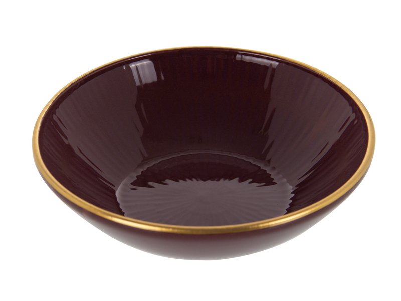 Тарілка керамічна глибока бордова із золотом Bordeaux 15 см