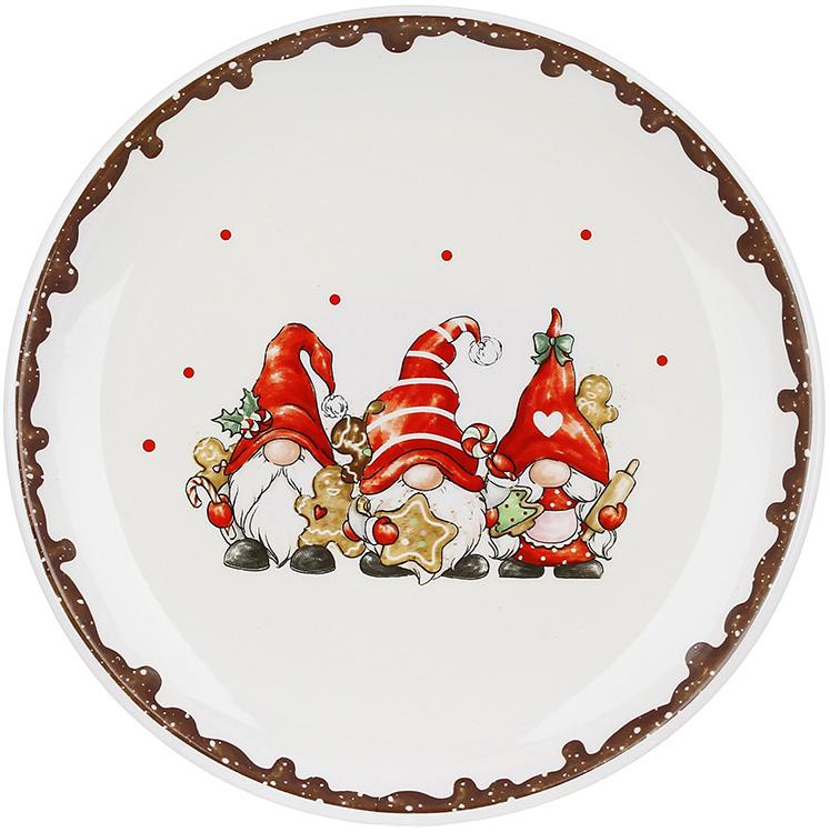 Різдвяна тарілка керамічна Пряничний Гном 21 см для святкового столу.