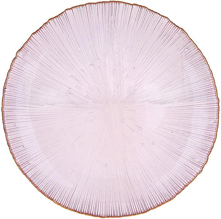 - Рожеве скло: Легкий рожевий відтінок додає тарілці витонченості та ніжності. Цей колір ідеально поєднується із золотими акцентами, створюючи гармонійний і стильний вигляд.