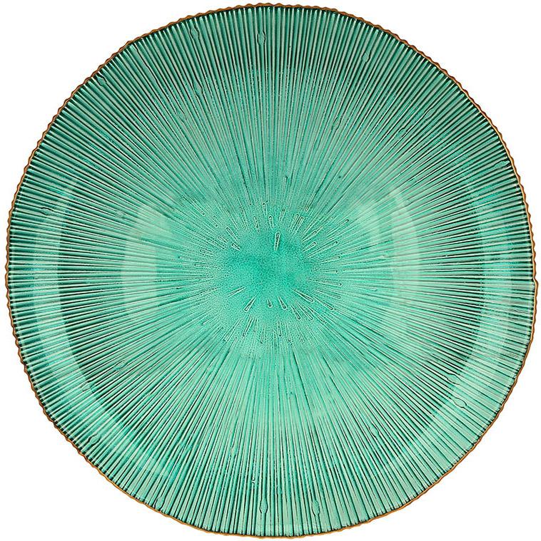- Смарагдове скло: Насичений смарагдовий відтінок додає тарілці глибини та витонченості. Цей колір чудово поєднується із золотими акцентами, створюючи гармонійний і стильний вигляд.
