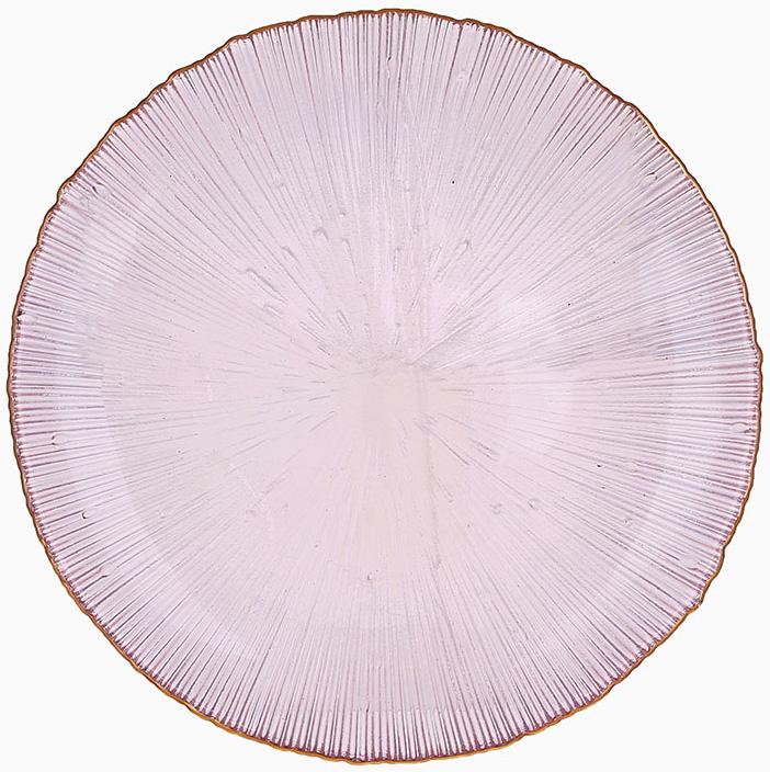 Обідня скляна тарілка Lustre — витонченість рожевого скла з золотим акцентом