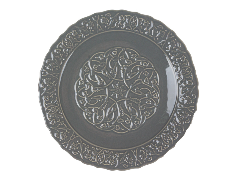 Тарілка «Вінтаж» діаметром 27 см — це яскравий акцент на вашому столі. Глибокий сіро-графітовий відтінок фарфору виглядає сучасно, але зберігає атмосферу старовинної класики. Рельєфний візерунок по всій поверхні створює об’єм та гру світла, завдяки чому тарілка виглядає дорого і виразно.