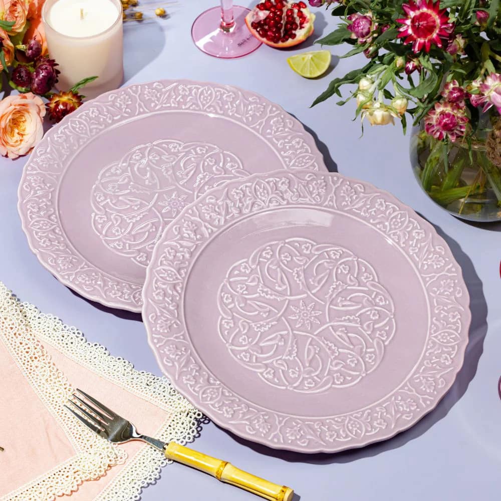 Тарілка «Вінтаж» діаметром 27 см створена для тих, хто обирає не просто посуд, а настрій. Глибокий пудрово-рожевий відтінок із витонченим рельєфним візерунком по краю перетворює кожен прийом їжі на естетичне задоволення. Об’ємний орнамент ніби перейнятий зі старовинних європейських сервізів, створюючи ефект ручної роботи та витонченої класики.