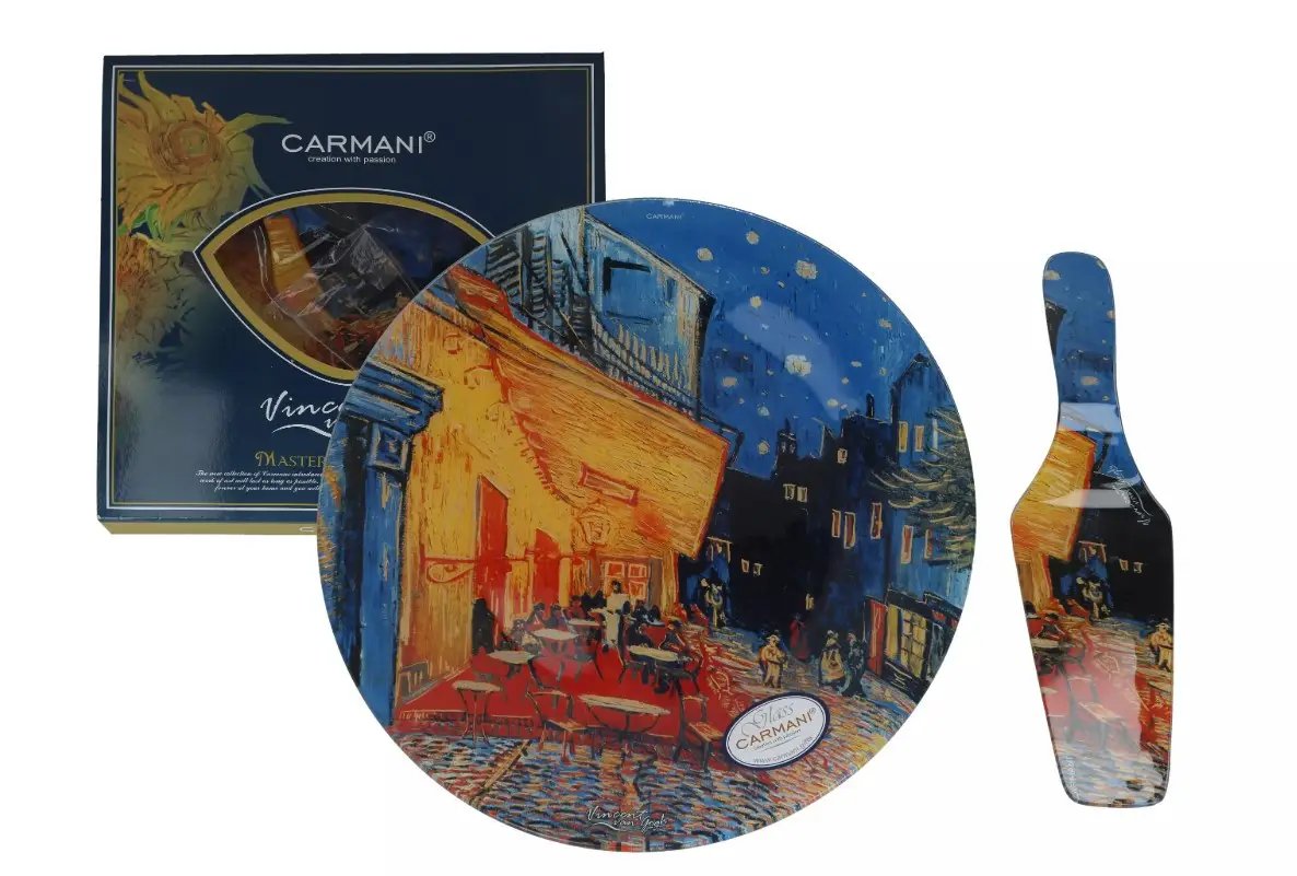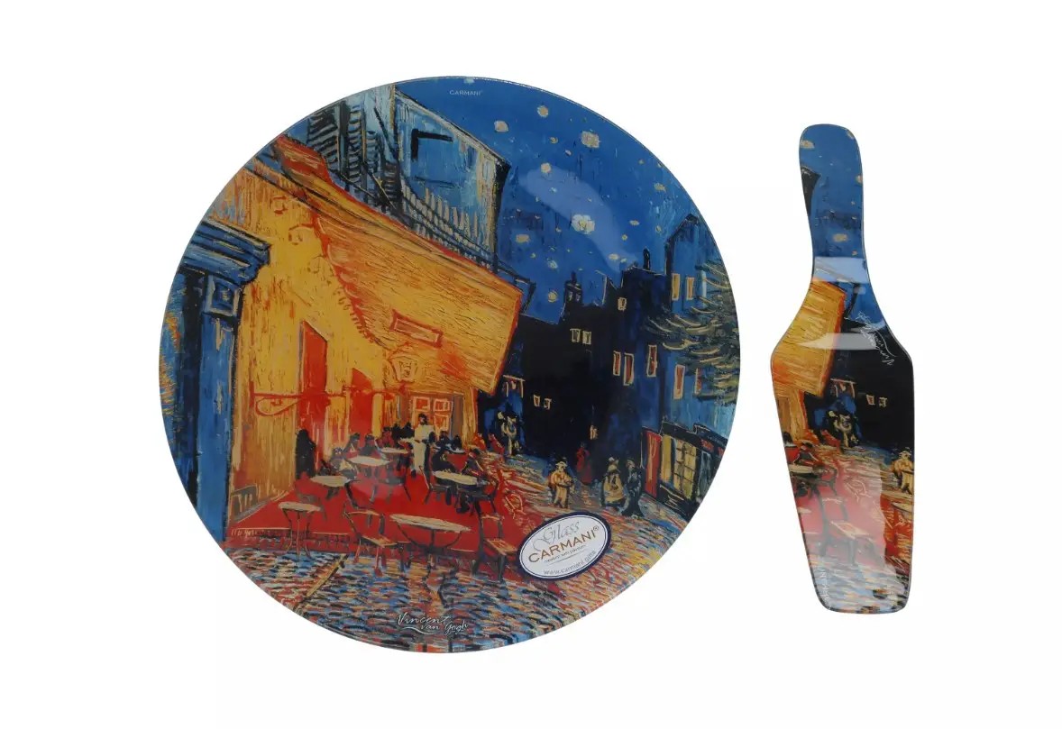 Тарілка-тортівниця з лопаткою скляна Carmani Ван Гог Нічна тераса 30 см