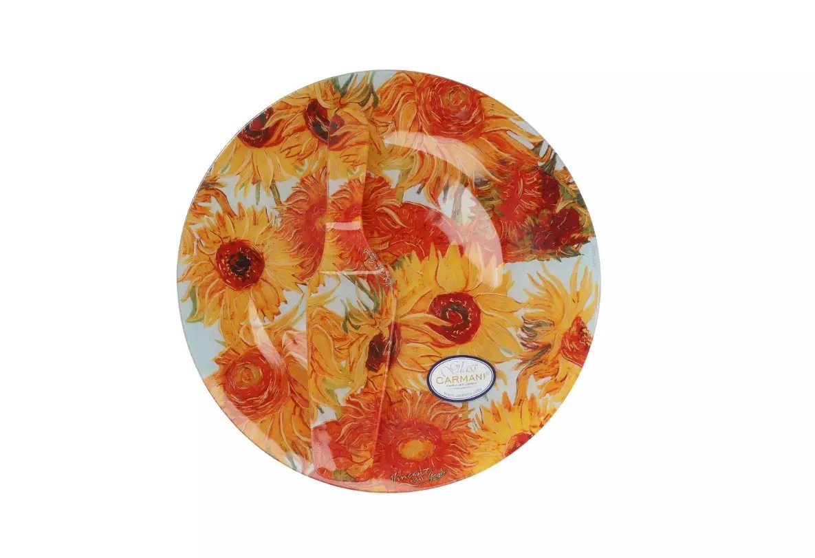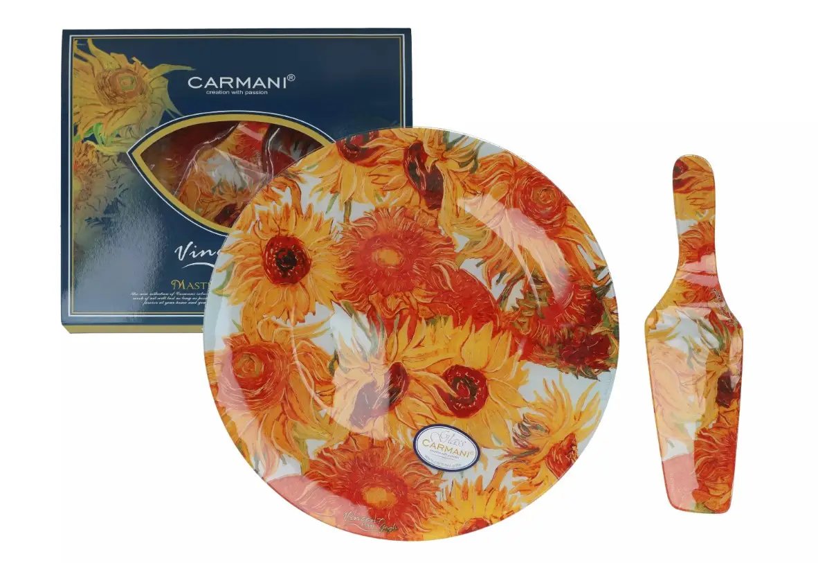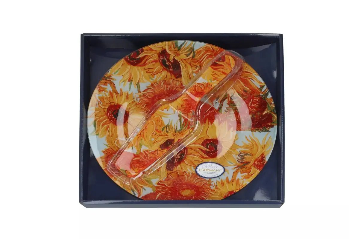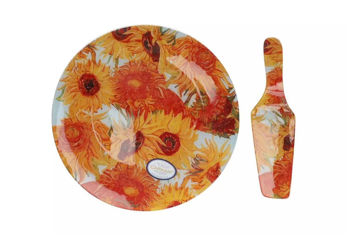 Тарілка-тортівниця з лопаткою скляна Carmani Ван Гог Соняшники 30 см
