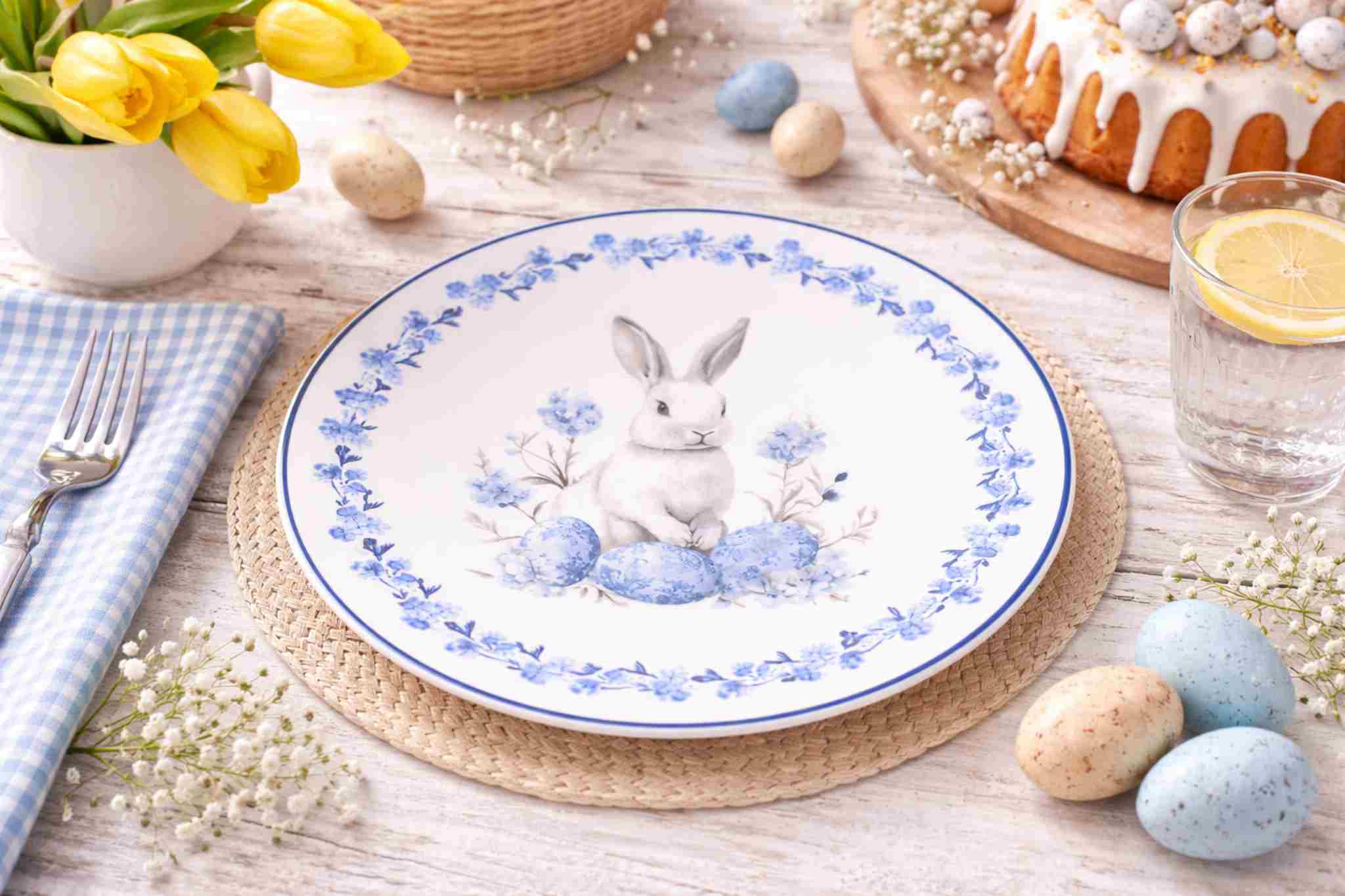 Тарілка великодня обідня керамічна Блакитний Зайчик 26 см