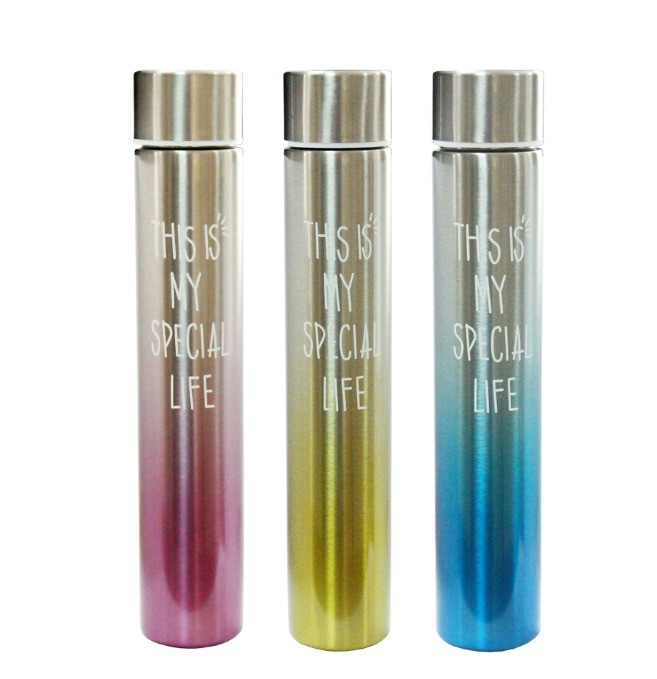 Тонкий термос "Моя жизнь" на 300 мл изготавливается из высококачественной нержавеющей пищевой стали. Таким образом, это гарантирует его долговечность. Модель хорошо противостоит механическим повреждениям, воздействию влаги и других химических веществ, попаданию прямых солнечных лучей, температурным перепадам и пр. Уникальная вакуумная технология позволяет сохранять напиток теплым или холодным в любое время года. Благодаря своим небольшим размерам, термос не займет много места в рюкзаке или машине. Пить можно прямо из бутылки, так что нет нужды носить с собой еще и чашку. Вдобавок, модель отличается своим стильным дизайном.