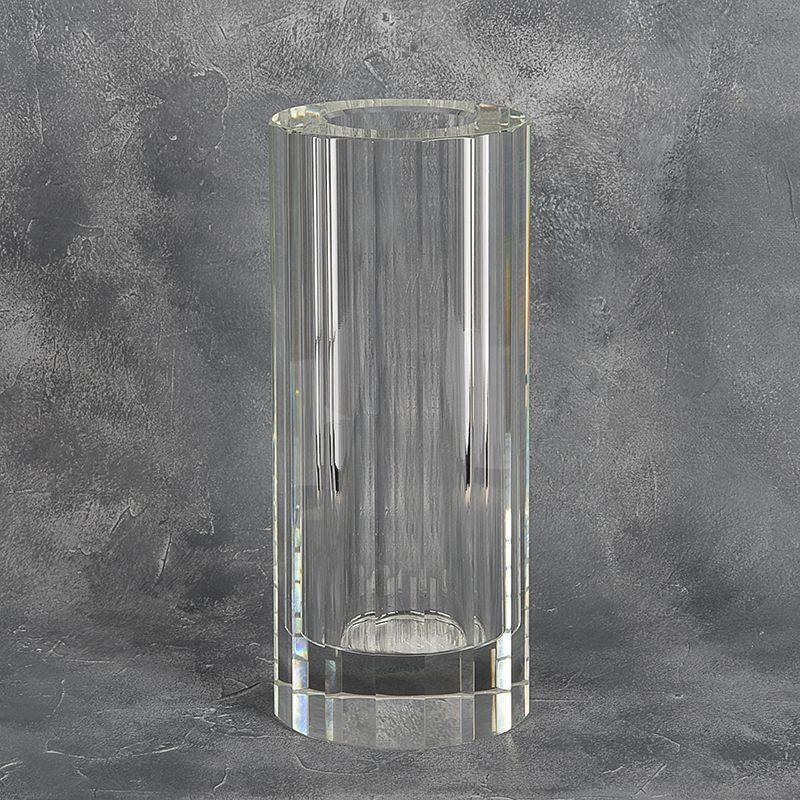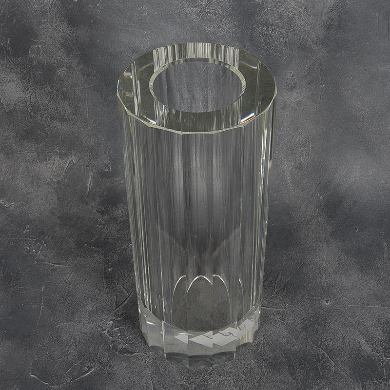 Толстостенная хрустальная ваза цилиндр рельефная Абгико 28 см