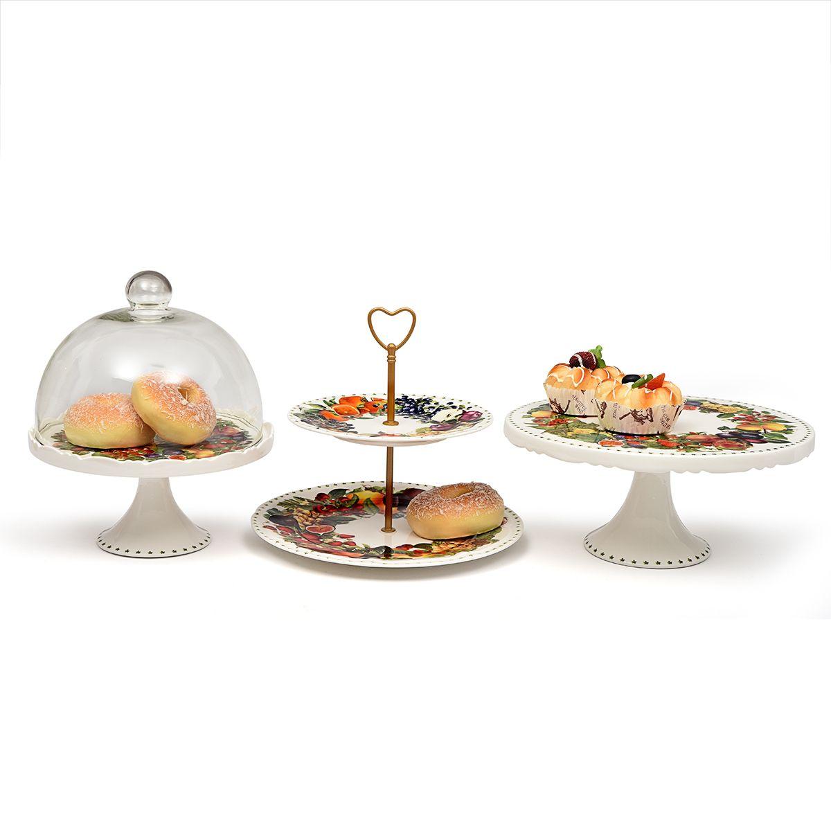 Фарфоровая тортовница на ножке Осенние плоды 28 см