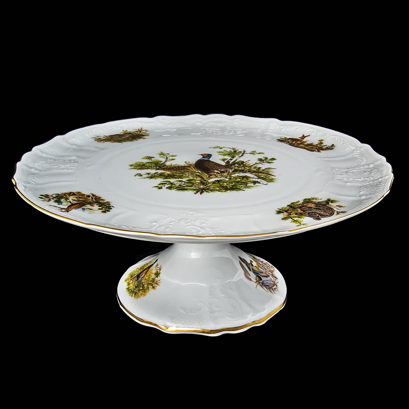 Тортовница фарфоровая с рисунком Bernadotte Охота 32 см с золотым обрамлением