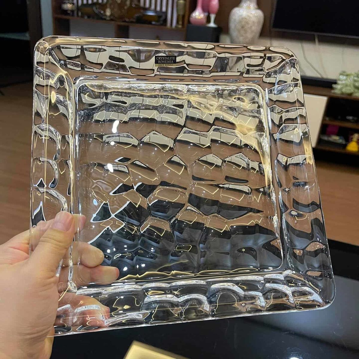Тортовница стеклянная Crystalite Bohemia MARBLE 26х26 см