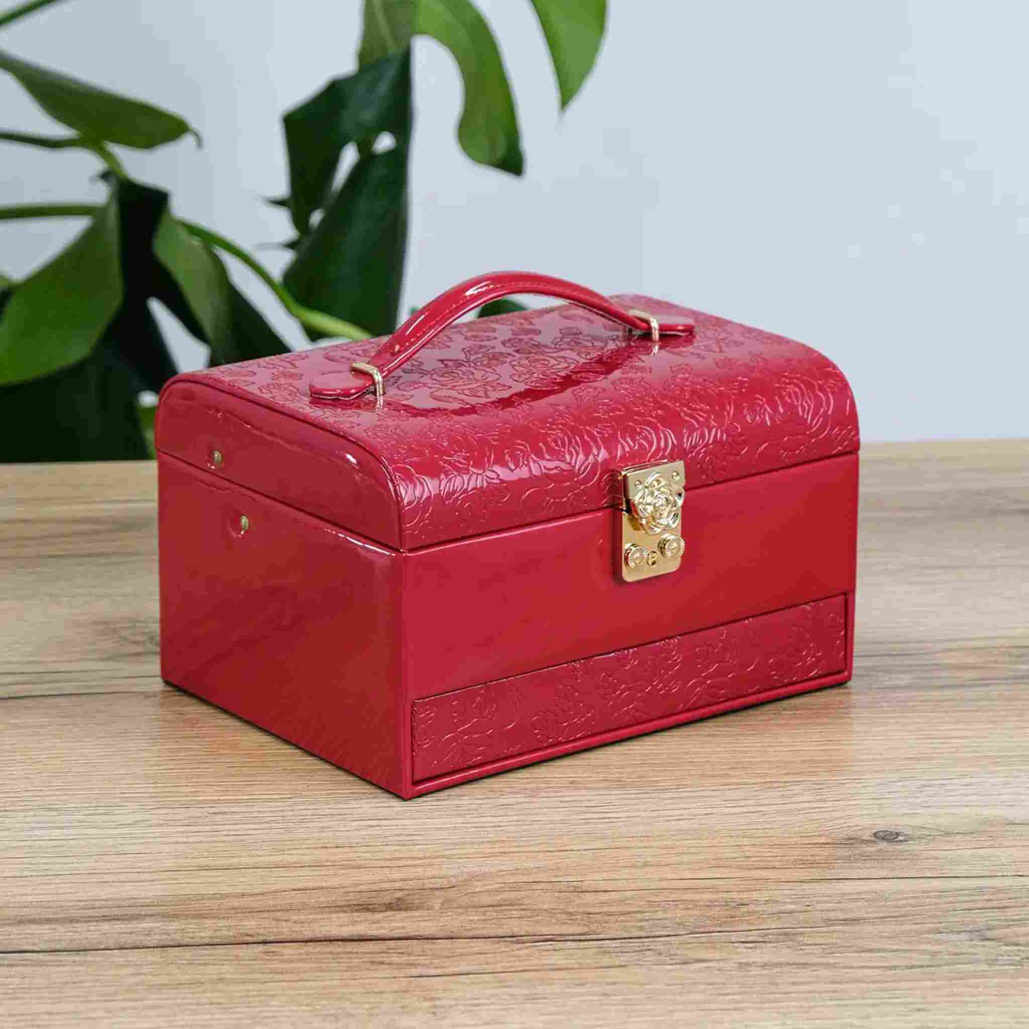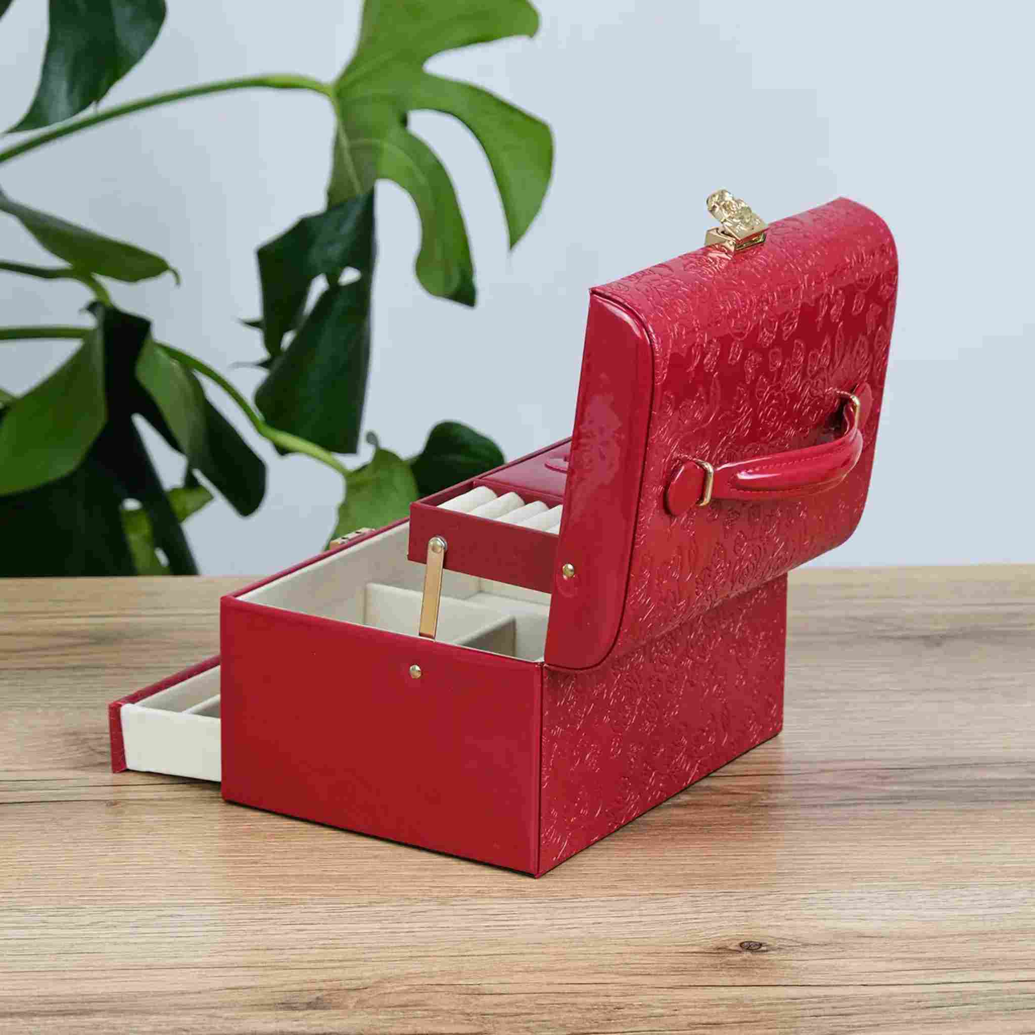 Ця ефектна триярусна скринька для прикрас створена для тих, хто цінує виразний стиль і бездоганний порядок. Насичений червоний колір робить її яскравим акцентом в інтер’єрі, додаючи енергії та характеру простору. Сучасний вигляд гармонійно поєднується з практичністю, перетворюючи зберігання прикрас на зручний і естетичний процес.