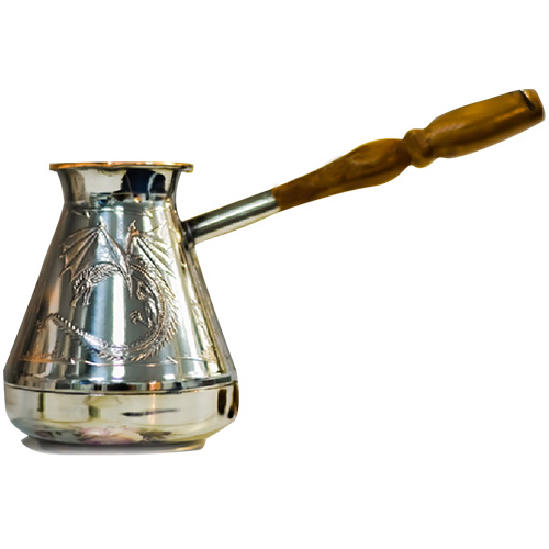 Изготовлена из листовой меди М1М (М2М) толщиной 1,2мм. Медь самый подходящий материал для равномерного и правильного прогрева кофе. Для защиты от внешних воздействий, внутренние стенки и дно турки покрыты пищевым оловом, толщиной 9-12 мкм. Внешние стенки покрыты жаропрочным серебристым тоном и имеют натуральный блеск. Медную турку можно использовать на газовой, электрической и стеклокерамической плите. Деревянная ручка с кольцом для подвеса красива и удобна в использовании. Медная кофеварка "Драконы" послужит прекрасным подарком для поклонников сериала "Игра Престолов" (Game of Thrones).