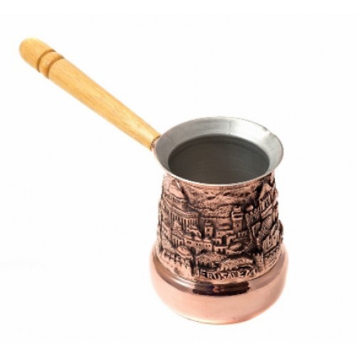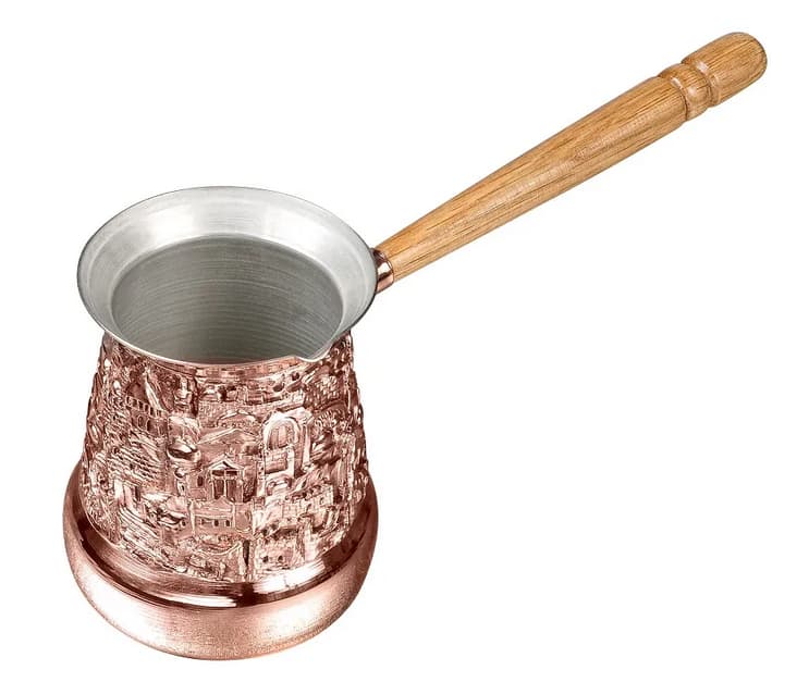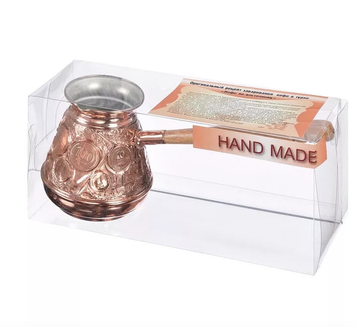 Красивая медная турка для приготовления утреннего кофе и отличного настроения на весь день! Удобная деревянная ручка не позволит Вам обжечься. Изготавливается турка мастерами Армении, из листа чистой меди, толщиной 1 мм. На дополнительном листе рельефная чеканка по меди. Внутри покрывается тонким напылением пищевого олова. Медная турка с чеканкой, подходит для приготовления кофе на электрических и газовых плитах, а так же других нагревающих поверхностях.
