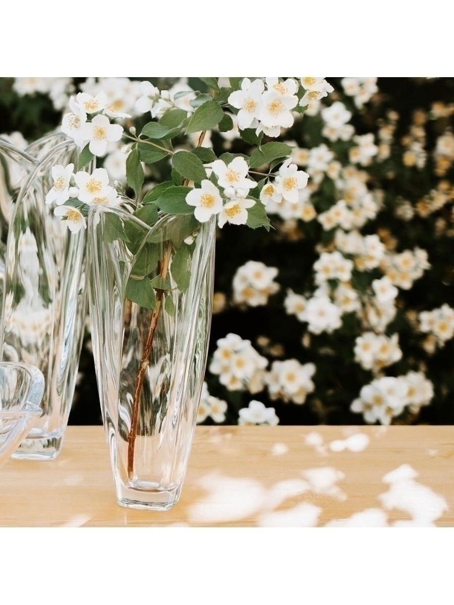 Весь ее дизайн напоминает большую открытую водяную лилию. Ее изогнутая форма напоминает застывшее движение – мягкие линии, которые ловят и отражают свет. Ее большая, плавная форма придает простору глубины и стилю. Эта ваза не требует много — один высокий цветочный стебель, ветка или сушеница делает композицию завершенной. Идеально подходит для холла, гостиной или даже для напольного размещения как самостоятельный элемент декора.