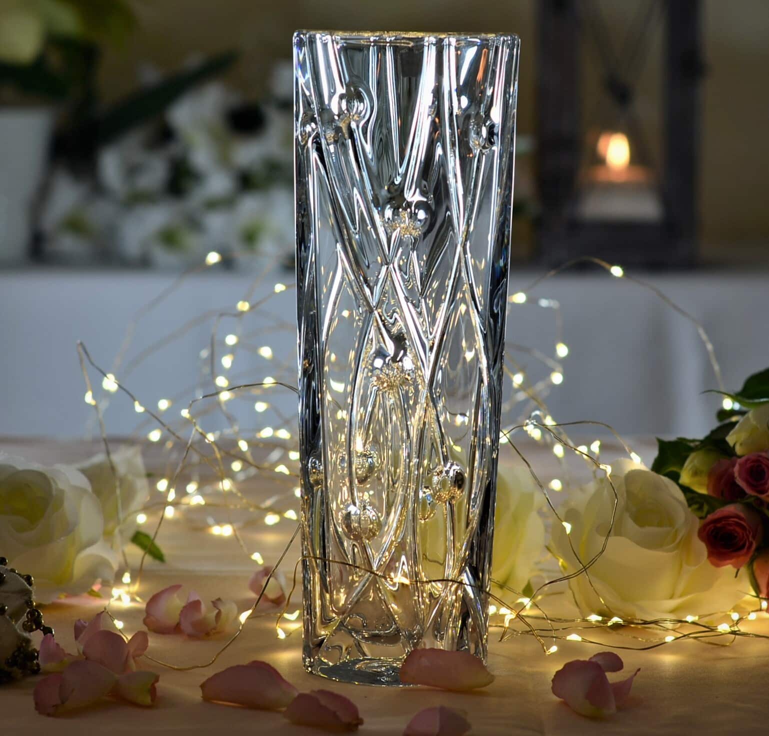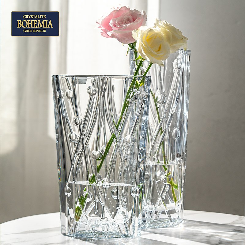 Выполнена с чешского стекла, стильно смотрится в интерьере дома. И отличный выбор на подарок, так-как вазу упакована я подарочную фирменную упаковкуПростая ваза 8KC86-99J52 Цилиндрической формы имеет роскошный новаторский дизайн, выдержанный в современном европейском стиле. Ваза имеет новый и уникальный дизайн каждой детали, с переплетенными каплевидными мотивами, минималистичный, но все же содержащий аристократический стиль, который помогает повысить ценность продукта, делая домашнее пространство более стильным и нежным.