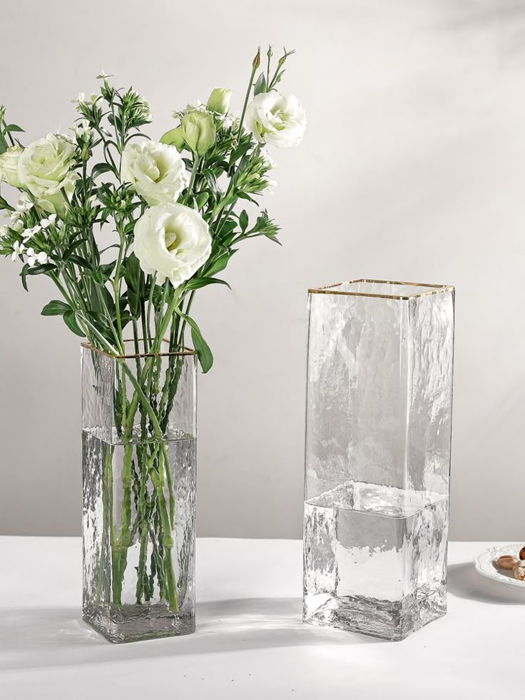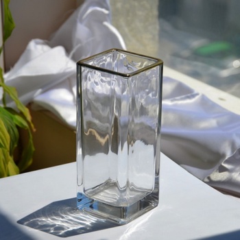 Скляні вази Ancient Glass "Еван" — втілення стриманої елегантності у сучасному інтер'єрі. Чітка прямокутна форма з ідеальними гранями додає композиціям структури та зібраності. Легкий сіро-прозорий відтінок скла створює ефект глибини, а золотий кант уздовж верхнього краю розставляє витончені акценти, підкреслюючи чистоту ліній.