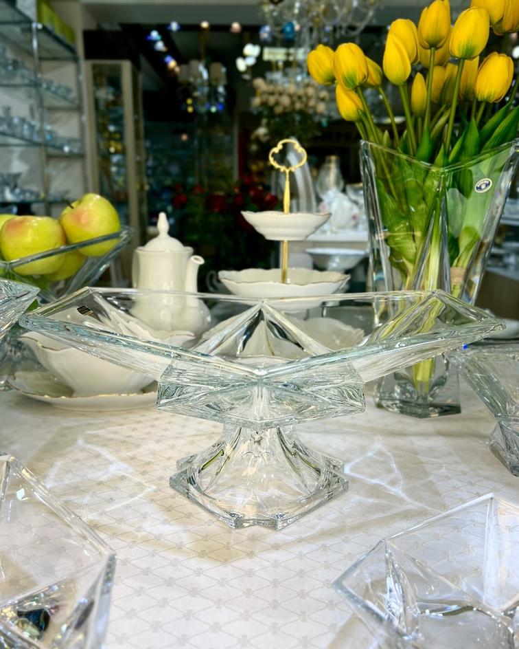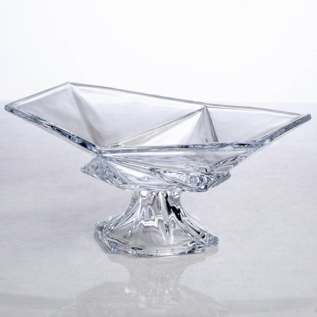 Фруктовница на ножке "Origami" от чешского бренда Crystalite Bohemia изготовлена из высококачественного богемского стекла. Она имеет изысканные стенки с плотным дном и наклонными краями, что придает ей уникальную форму. Благодаря этому необычному дизайну сосуд будет излучать яркие блики, придающие ему особый вид. Стильная модель легко впишется в любой интерьер благодаря своей элегантной, ненавязчивой форме. Изделие также отличается высоким качеством исполнения, что подчеркивает его изысканный дизайн.