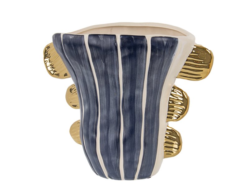 Колекція керамічних ваз «Морська енергія» — це справжній дизайнерський акцент для вашого інтер’єру. Контрастні сині лінії та глибокі орнаменти нагадують морські хвилі, а золотаві ручки надають виробам вишуканості та легкого відтінку розкоші. Кожна ваза цієї серії наче зберігає у собі подих океану.