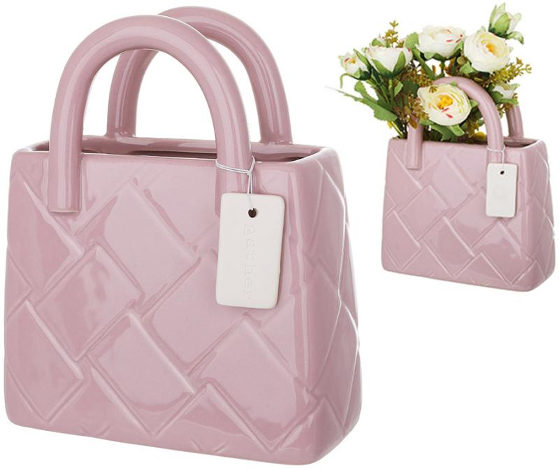 Керамічна сумка ваза для квітів рожева Сумочка 18 см