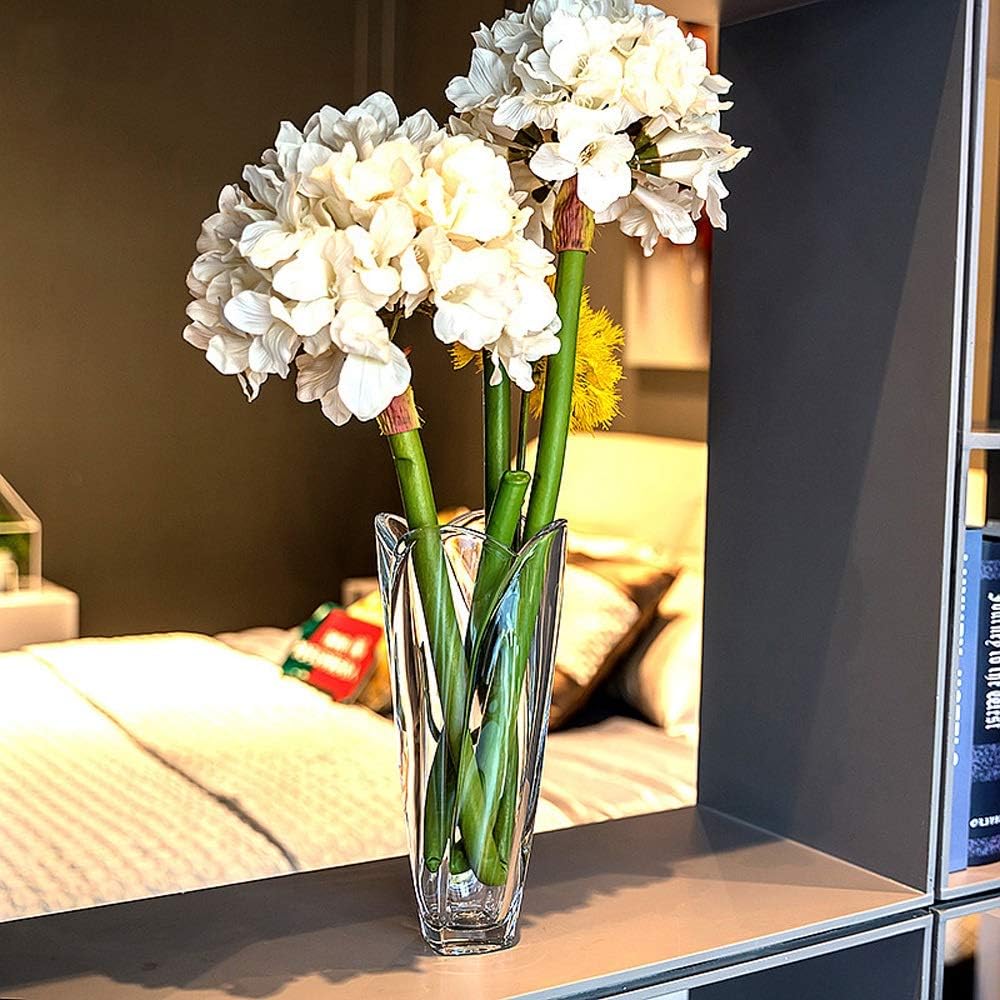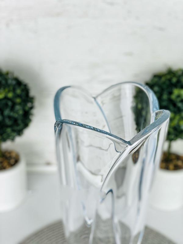 Її хвилеподібна форма та прозоре скло створюють легкість та гру світла. Ця модель ідеально підійде для однієї квітки, невеликого букета або як самостійний декоративний елемент.