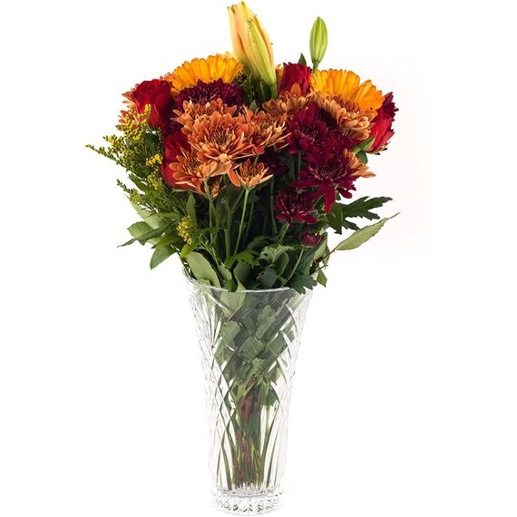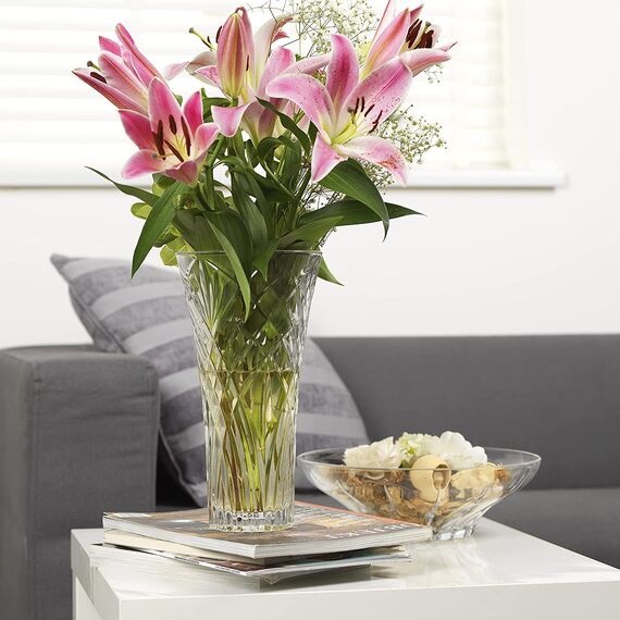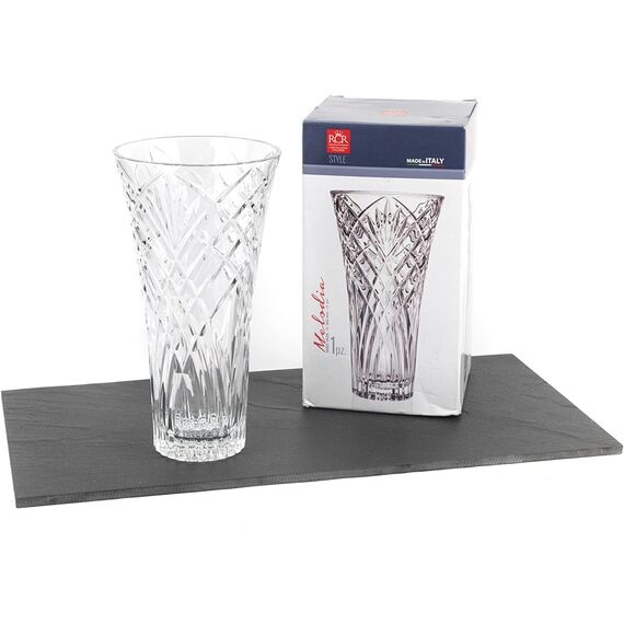 Ваза MELODIA висотою 30 см — це предмет, який одразу привертає до себе увагу. Її витончені лінії та глибокий візерунок на склі створюють гру світла і відблисків, перетворюючи навіть найпростіший букет на справжній витвір мистецтва. Така ваза здатна підкреслити красу як яскравих пишних квітів, так і мінімалістичних композицій.