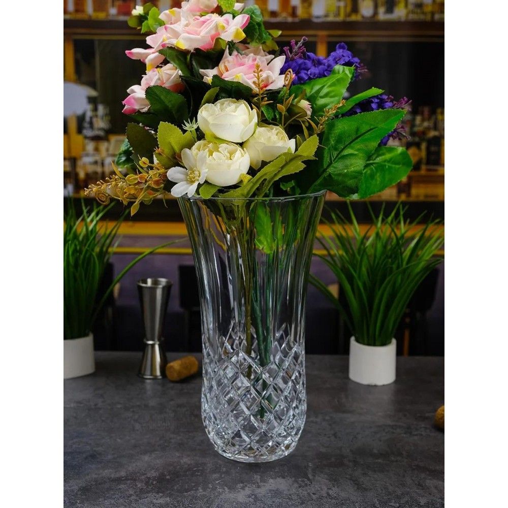 Більш висока версія – Opera 30 см – розкриває всю глибину дизайну. Вона створена для великих букетів, здатних стати центром уваги у вітальні чи залі. Її строга гранчаста поверхня надає інтер’єру солідності, а сяйво скла підкреслює атмосферу урочистості. Обидві вази – це не просто предмети декору, а інвестиція у стиль та настрій вашого дому. Обираючи Opera, ви обираєте італійську якість та довговічну красу.