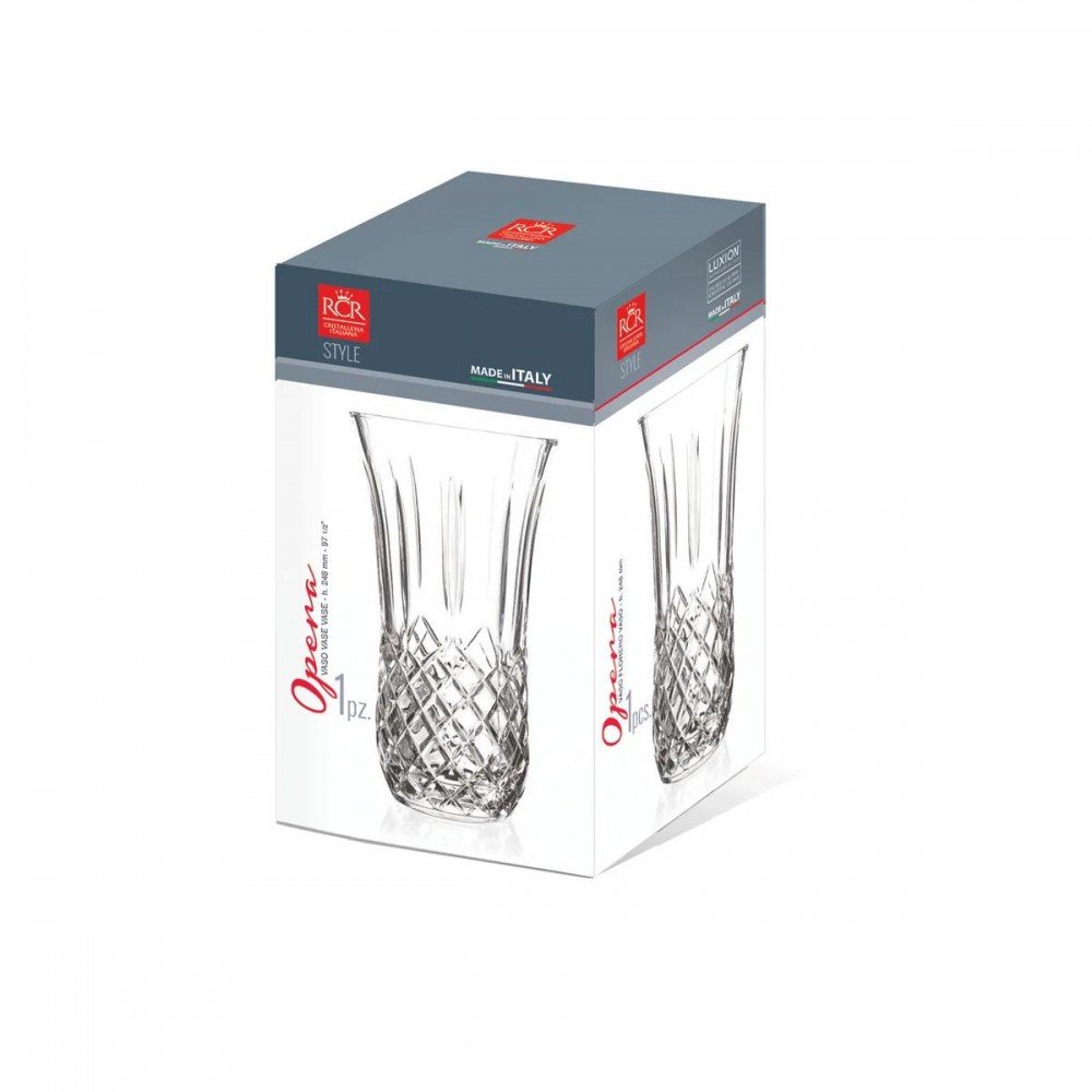 Колекція Opera – це втілення вишуканості та традиційної італійської гранчастої класики у сучасному виконанні. Кожна грань вази віддзеркалює світло, створюючи гру відблисків і сяйва, завдяки чому інтер’єр оживає, набуває нотки витонченого блиску та гармонії. Незалежно від того, обираєте ви модель висотою 25 см чи більш солідну – 30 см, обидві однаково вражають своєю естетикою.