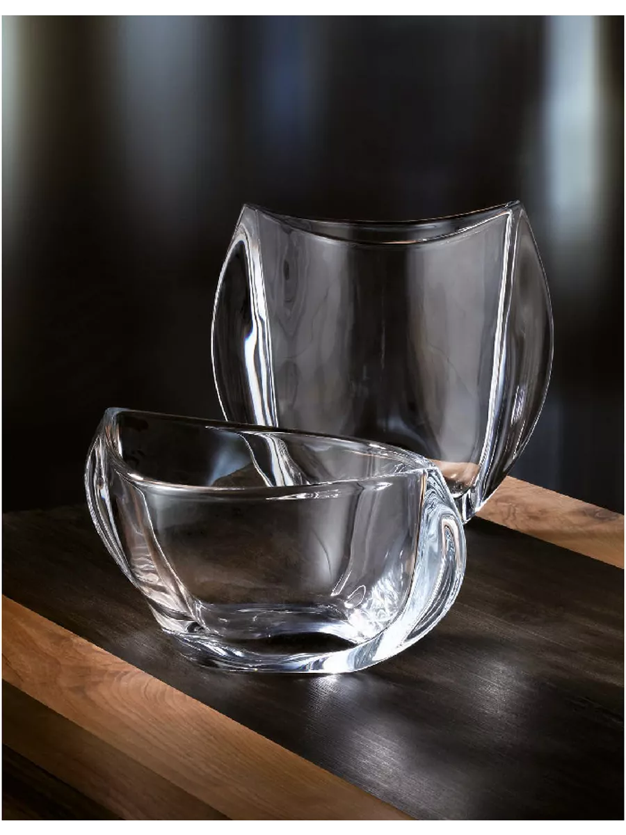 Кожна ваза та фруктовниця виготовлена з високоякісного чеського кришталю, що відомий своєю прозорістю, міцністю та здатністю переломлювати світло. Витончена геометрія колекції підкреслює природну красу матеріалу, створюючи ефект легкості та повітряності.