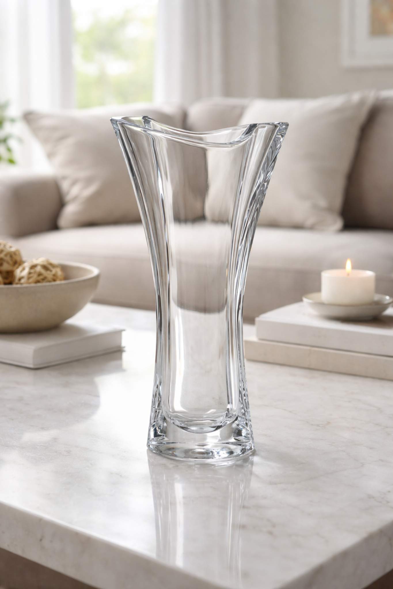 Колекція Bohemia Smile — це вишукані вази та страви з прозорого богемського скла, створені для тих, хто цінує сучасний дизайн і практичність. Характерною рисою колекції є плавна асиметрична лінія верхнього краю, що нагадує м’яку усмішку. Такі форми надають виробам легкості, оригінальності та візуальної привабливості.