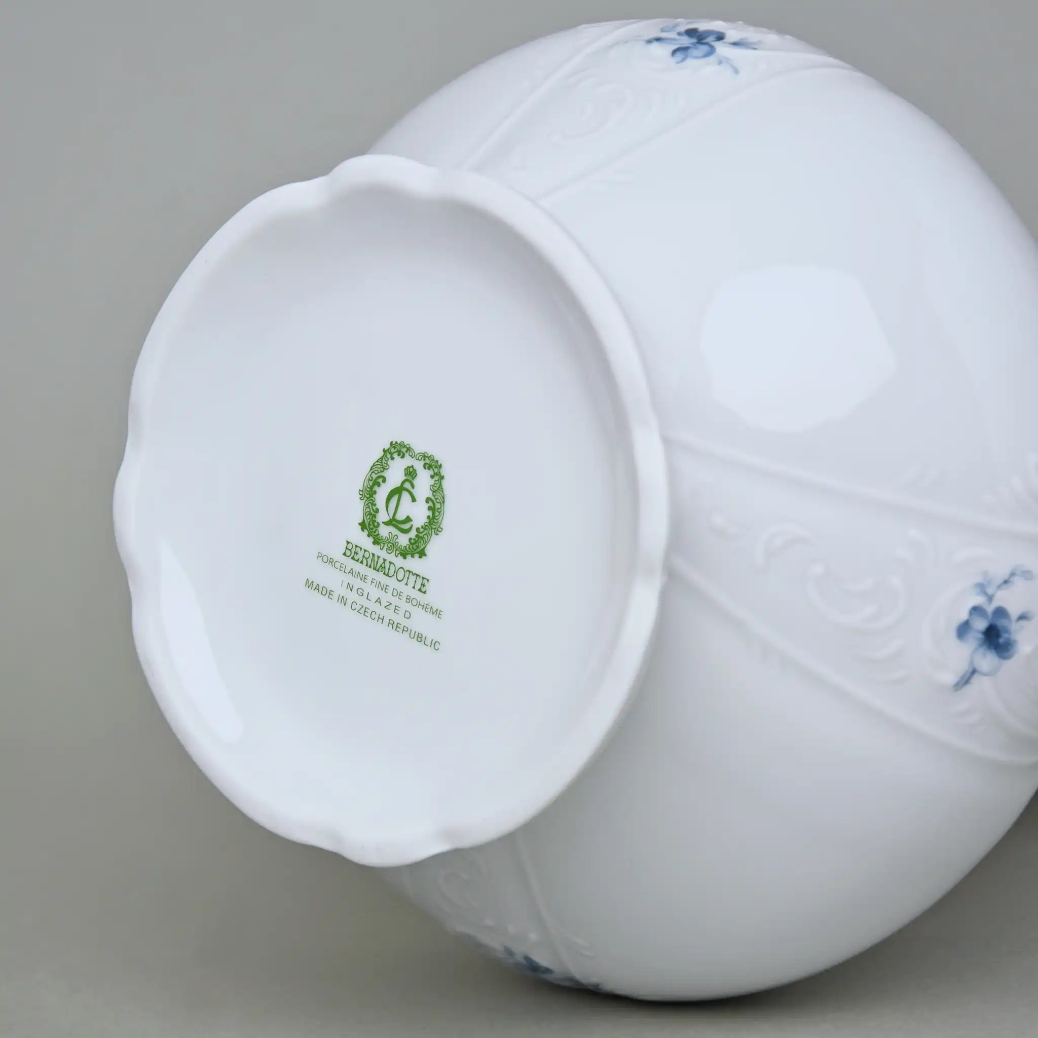 Ваза Thun Bernadotte «Апрельское цветение» — это воплощение весенней свежести и утончённой аристократичности. Её форма — плавная и элегантная, напоминающая бутон, распускающийся под первыми солнечными лучами. Белоснежный фарфор служит идеальным холстом для деликатного цветочного рисунка в небесно-голубых оттенках, а синий кант по краю придаёт законченный, изысканный штрих.