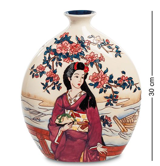 Ваза «Гейша» – це чудове уособлення культури Японії. Ручна робота виконана з порцеляни, оформлена квітковим орнаментом, чудово впишеться в будь-який інтер'єр і стане чудовим подарунком як для близьких, так і для друзів. Ваза «Гейша» це відмінний привід, щоб дарувати і купувати квіти, які гармонійно дивитимуся у вазі «Гейша».