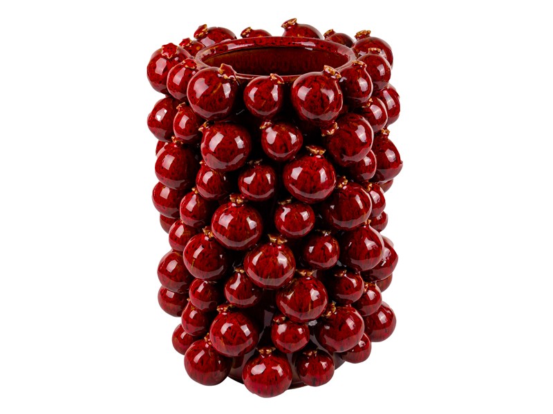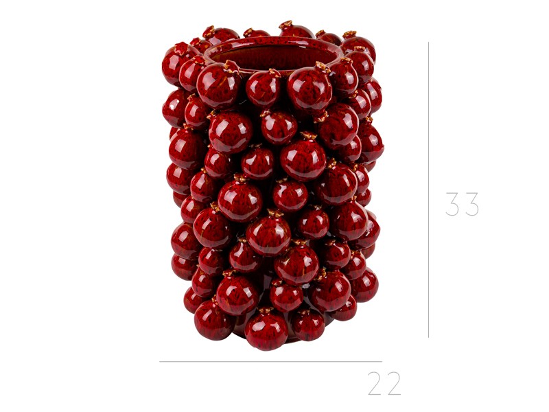 Вази з колекції «Гранати» — це виразні декоративні акценти, створені для тих, хто цінує поєднання незвичайної форми та насиченого глибокого кольору. Рельєфна поверхня, складена з численних об’ємних гранатів, одразу привертає увагу та робить кожну вазу яскравим елементом інтер’єру. Теплий коричнево-червоний відтінок підкреслює фактуру і чудово поєднується як із сучасними, так і з класичними стилями оформлення.