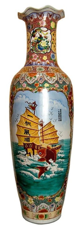 Ваза керамическая напольная "Корабль с рыбой и фазаны" 132 см